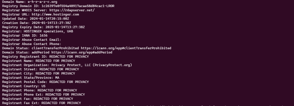 After this introduction, let’s move on to this kit. Matrix downloaded it from the e-h-r-a-z-c[.]org domain around 9pm today (January 14, 2023). The domain was registered via hostinger.com