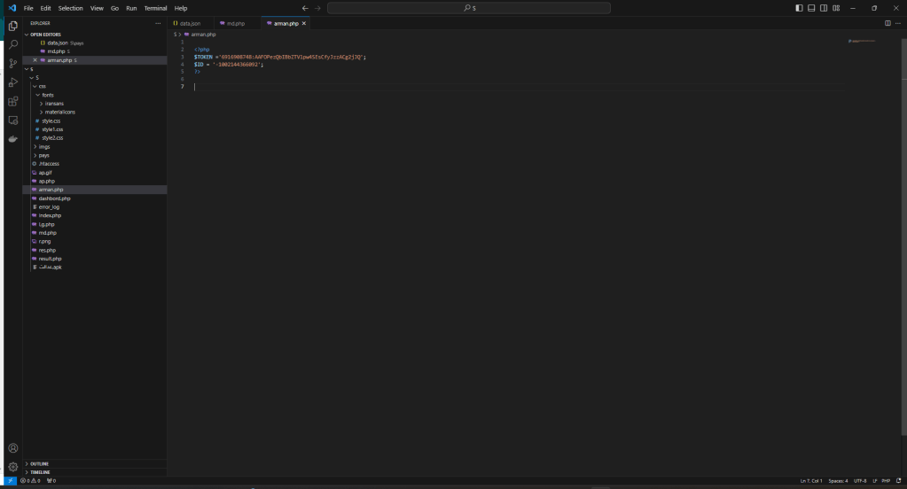 In the PHP sources we find the token to which the stolen credentials are sent.