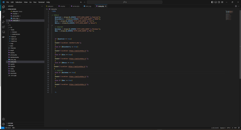 Inside the kit there are the PHP sources that make up the phishing site and a malware for Android.