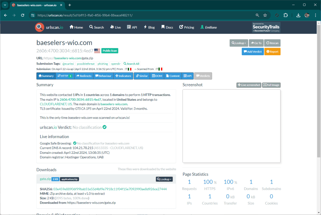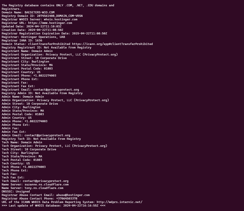 The domains baeseters-wio[.]com and baeselers-wio[.]com were registered a few hours ago.