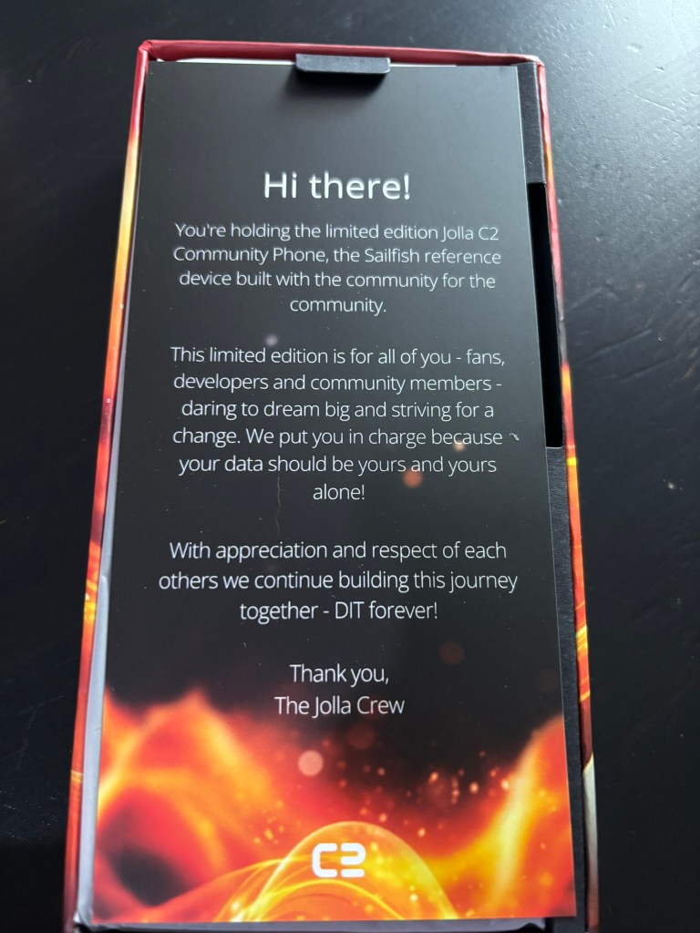 My new phone finally arrived last week! It’s a Jolla C2.